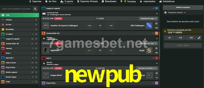 A aposta newpub oferece aos jogadores a experiência mais conveniente de apostas em eSports!